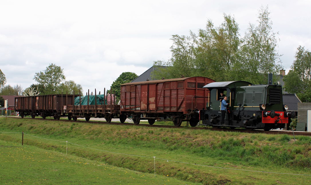 2.16. STAR Dieselhydraulische locomotief V53 019 van Museumspoorlijn STAR met een Goederentrein met Personenvervoer onderweg bij Bareveld. Datering: 02-05-2010.