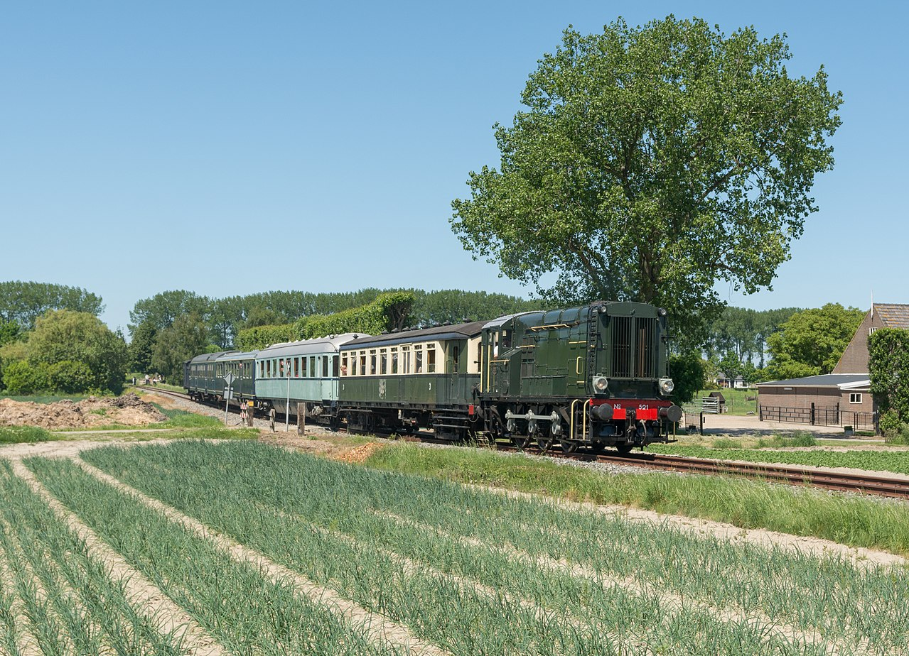 2.11. Stoomtrein Goes-Borsele tijdens het evenement 'Sporen naar het Verleden'. Hier reed ook dieselloc SGB 521 bij Langeweeje met passagierstrein 55 naar Hoedekenskerke. Datering: 25-05-2017.