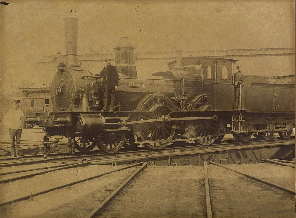 De stoomlocomotief nr 66 (uit de serie 43-60 en 63-70) met de naam "Styx" van de H.S.M. (Hollandsche IJzeren Spoorweg-Maatschappij) en later omgenummerd als nr 808 (serie 800) van de N.S. Datering: Tussen 01-01-1876 en 31-12-1932.