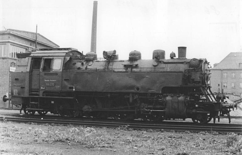 <<< Stoomloc DR 86 270 in Bw Dresden-Friedrichstadt (1952).