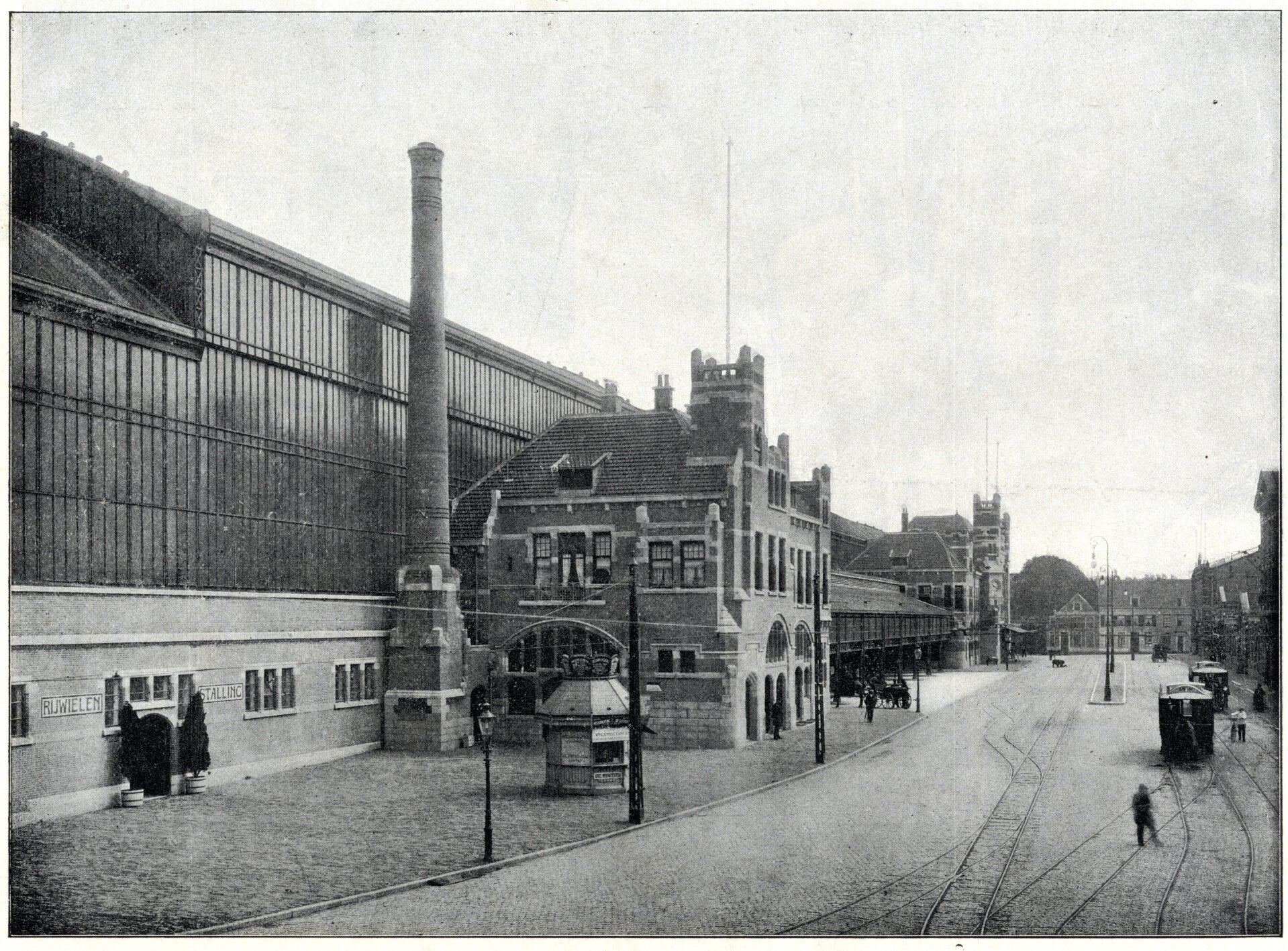 Gezicht op het H.S.M.-station Haarlem te Haarlem. Datering: Tussen 01-01-1909 en 31-12-1909.