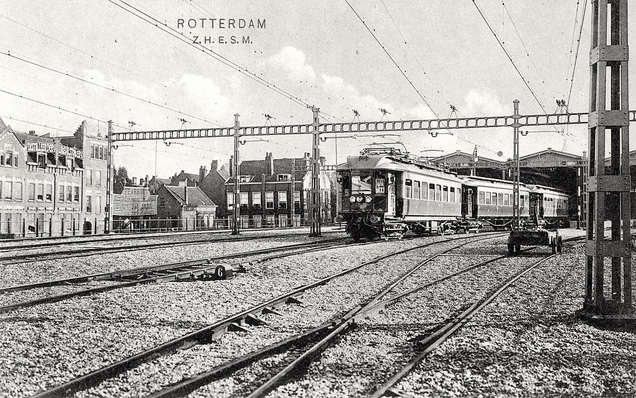 De Zuid-Hollandsche Electrische Spoorweg-Maatschappij (ZHESM) werd opgericht op 4 januari 1900 te Den Haag. Deze legde de volgende lijnen aan: Den Haag Hollands Spoor – Scheveningen, opening op 1 mei 1907 (stoomtractie), en Den Haag Loolaan – Rotterdam Hofplein, opening op 1 oktober 1908. Met ingang van deze datum werd elektrische tractie (10.000 V eenfase wisselstroom) ingevoerd. De elektrische centrale bevond zich te Leidschen-dam. Het was de eerste elektrische spoorweg in Nederland. Op dezelfde datum werd de exploitatie voortgezet door de HSM. Op 1 januari 1923 ging de ZHESM voorgoed op in de HSM, want deze maatschappij had al sinds het begin van de ZHESM alle aandelen in handen.